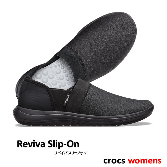 ▲¥3990 送料無料▼CROCS【クロックス/レディース】Reviva Slip-On W/ リバイバ スリップオン ウィメンズ/ ブラック×ブラック|サンダル フラット パンプス ワーク オフィスナース 医療 バレー コンフォート